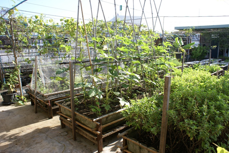 First stop in this post of my post-forum experiences in Thailand is my favourite hotel. There are many good things about this boutique hotel. Most of all the genuine commitment of the owners shines through from use of recycled materials in the bedrooms, the funky artwork, the organic breakfasts, and their rooftop garden. Otherwise ugly concrete buildings can be transformed into urban oases with the right mindset.